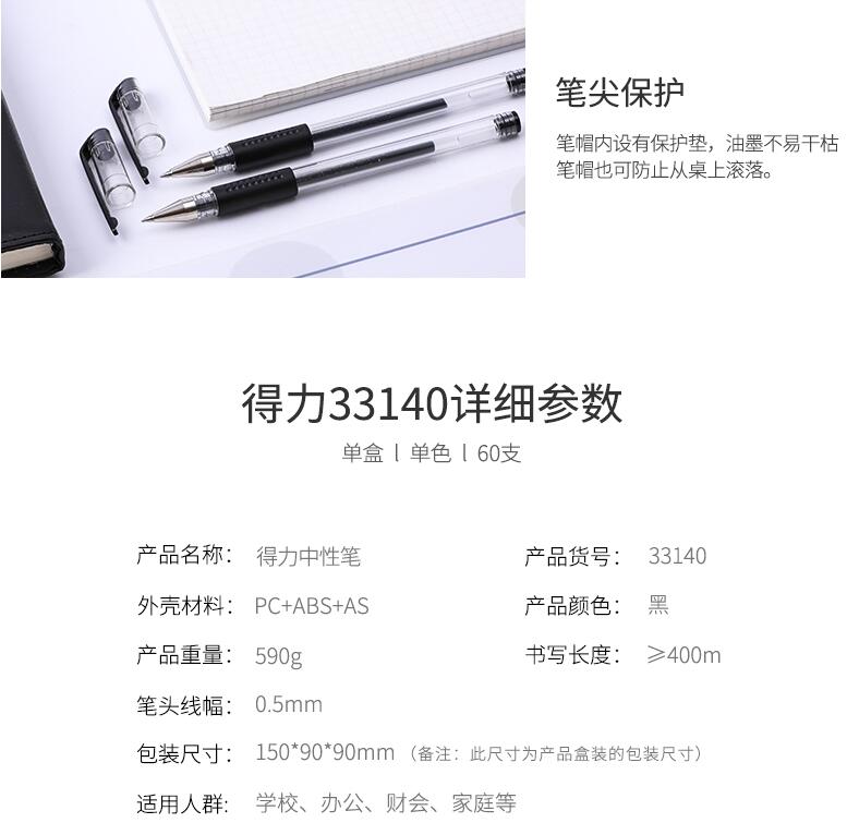 得力文具33140中性筆學(xué)生考試量販式黑筆水筆碳素筆0.5mm辦公用品包郵書寫工具60支裝