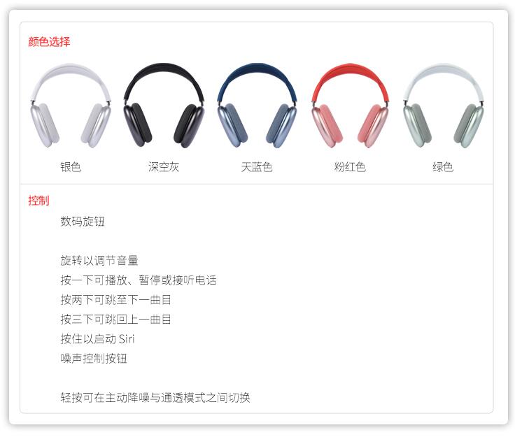Apple/蘋(píng)果 AirPods Max 無(wú)線(xiàn)藍(lán)牙耳機(jī) airpodsmax 頭戴式降噪
